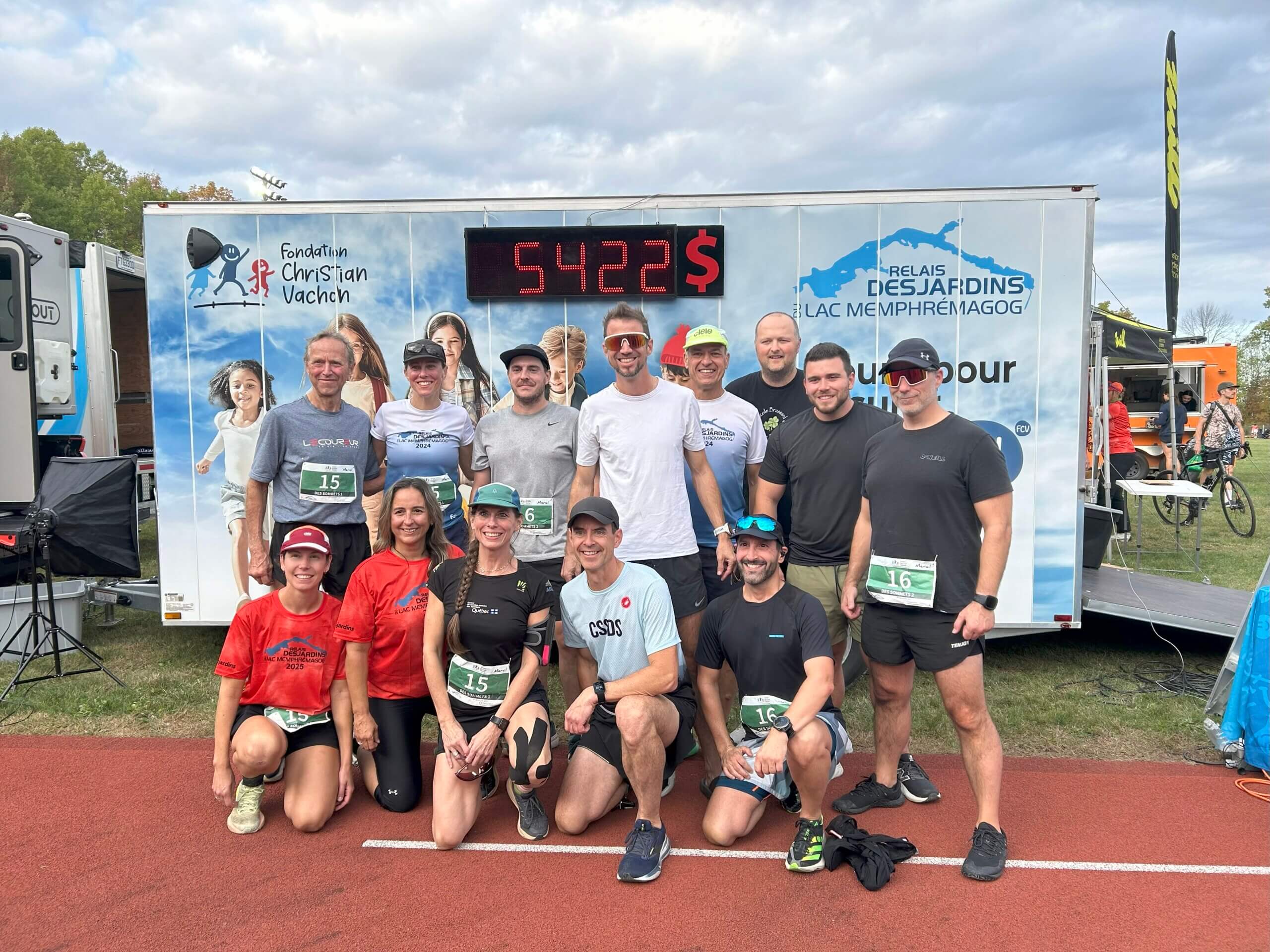 Le samedi 27 septembre s’est déroulée la 19e édition du Relais Desjardins du Lac Memphrémagog, un événement sportif qui a rassemblé coureurs et bénévoles autour d’un défi de taille. Le Centre de services scolaire des Sommets (CSSDS) était représenté par deux équipes composées de Caroline Monette, Hugues Gendron, Jean-Sébastien Roberge, Viviane Larocque, Julie Dasté, Réjean Desmarais, Alexis Dion, David Beaudry, Amélie Côté, Pier-Samuel Poulin, Jonathan Paradis, Gregory Fortier et Christian Côté. Ensemble, ils ont parcouru les 110 kilomètres du relais avec détermination et ont amassé 5722 $.