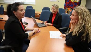 Composée de Véronique Drouin (psychologue), Eugénette Blondin (conseillère pédagogique) et Élodie Ayotte (technicienne en éducation spécialisée), cette équipe accompagne les classes Zénith et aide les écoles à implanter la stratégie ARC (attachement, régulation des émotions et compétence). L’équipe ne pourrait être complète sans la contribution d’Élodie, dont la présence en classe permet de faire vivre les interventions au quotidien.
